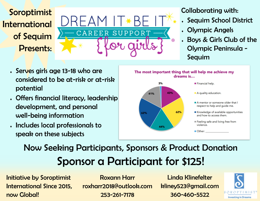 Soroptimist International of Sequim is part of Soroptimist International, which consists of Soroptimist International of the Americas, Soroptimist International of Europe, Soroptimist International of Great Britain & Ireland, Soroptimist International of the South West Pacific and Soroptimist International of Africa. We are part of this global volunteer movement working together to transform the lives of women and girls.